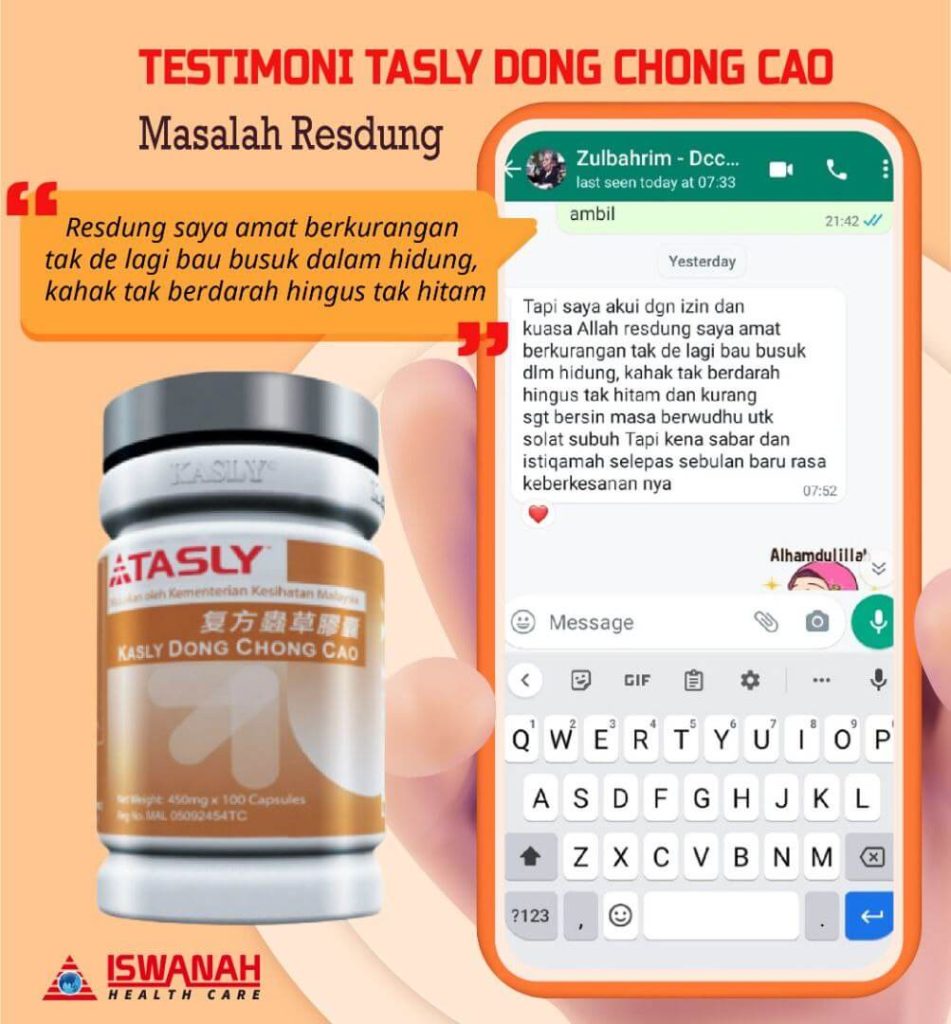 Tasly Dong Chong Cao..Aduhhh! Resdung makin teruk, dah cuba macam-macam tapi masalah resdung tak jugak hilang? Sabar!